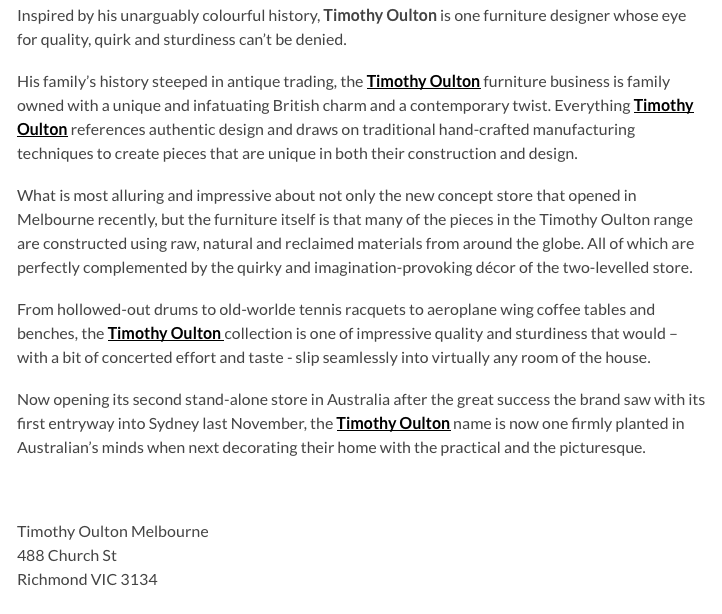 MelbGirl: Timothy Oulton store opening, 22 July 2013 22/07/201311/07/2021 • James B See it online: http://www.melbournegirl.com.au/2013/07/22/melbourne-timothy-oulton-opening/ Share with your colleagues Click to share on LinkedIn (Opens in new window) LinkedIn Click to email a link to a friend (Opens in new window) Email Click to print (Opens in new window) Print Like Loading... Related